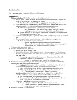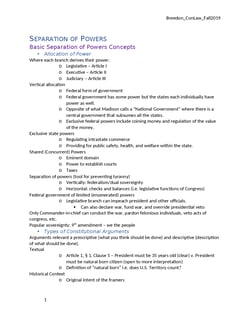 This is a compilation of lecture notes and reading notes compiled by the student from a first year constitutional law class. It includes a range of procedural/jurisprudential information, including case law briefs on the following: